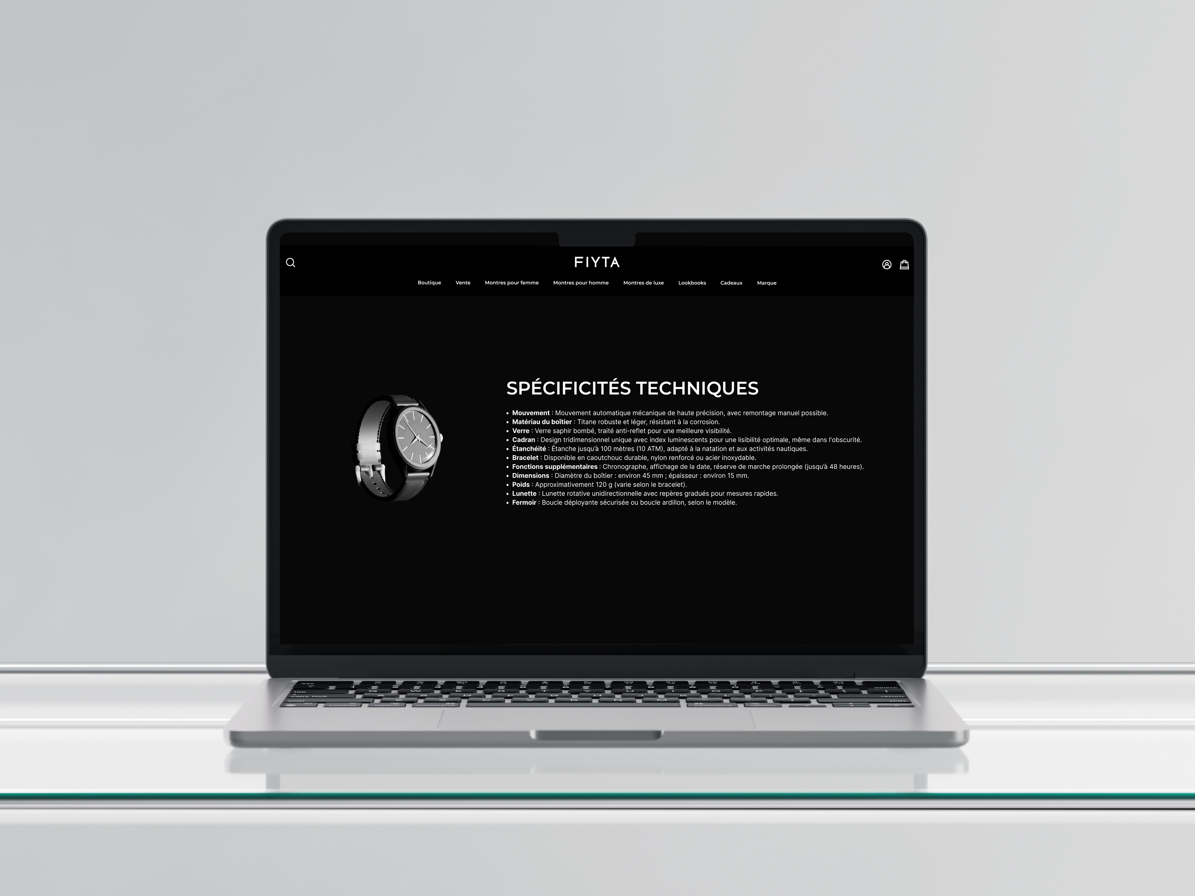 Fiyta est un horloger chinois concevant des montres de prestige. À l'occasion de la sortie de son modèle Extreme 3D, l'entreprise souhaite créer une landing page de présentation pour sa clientèle française. Le but de la page est de mettre en avant l'originalité de la montre.